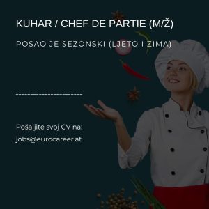 Kuhar / Chef de Partie (m/ž) Posao je sezonski (ljeto i zima) Za hotel 5* u Bad Kleinkirchheim, pokrajina Kaernten tražimo kuhara (m/ ž) sa