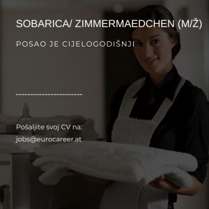 Sobarica/ Zimmermaedchen (m/ž) Posao je cijelogodišnji Za hotel 4* u mjestu Tannheim, pokrajina Tirol tražimo sobaricu (m/ž) sa iskustvom i znanjem njemačkog I /ili engleskog