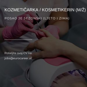 Kozmetičarka / Kosmetikerin (m/ž) Posao je sezonski (ljeto i zima) Za hotel 5* u Bad Kleinkirchheim, pokrajina Kaernten tražimo kozmetičarku sa iskustvom i znanjem njemačkog