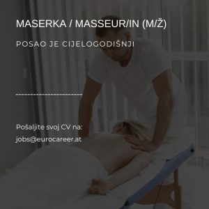 Maserka / Masseur/in (m/ž) Posao je cijelogodišnji Za hotel 5* u blizini Innsbrucka, pokrajina Tirol tražimo maserku sa iskustvom i znanjem njemačkog i/ili engleskog jezika.